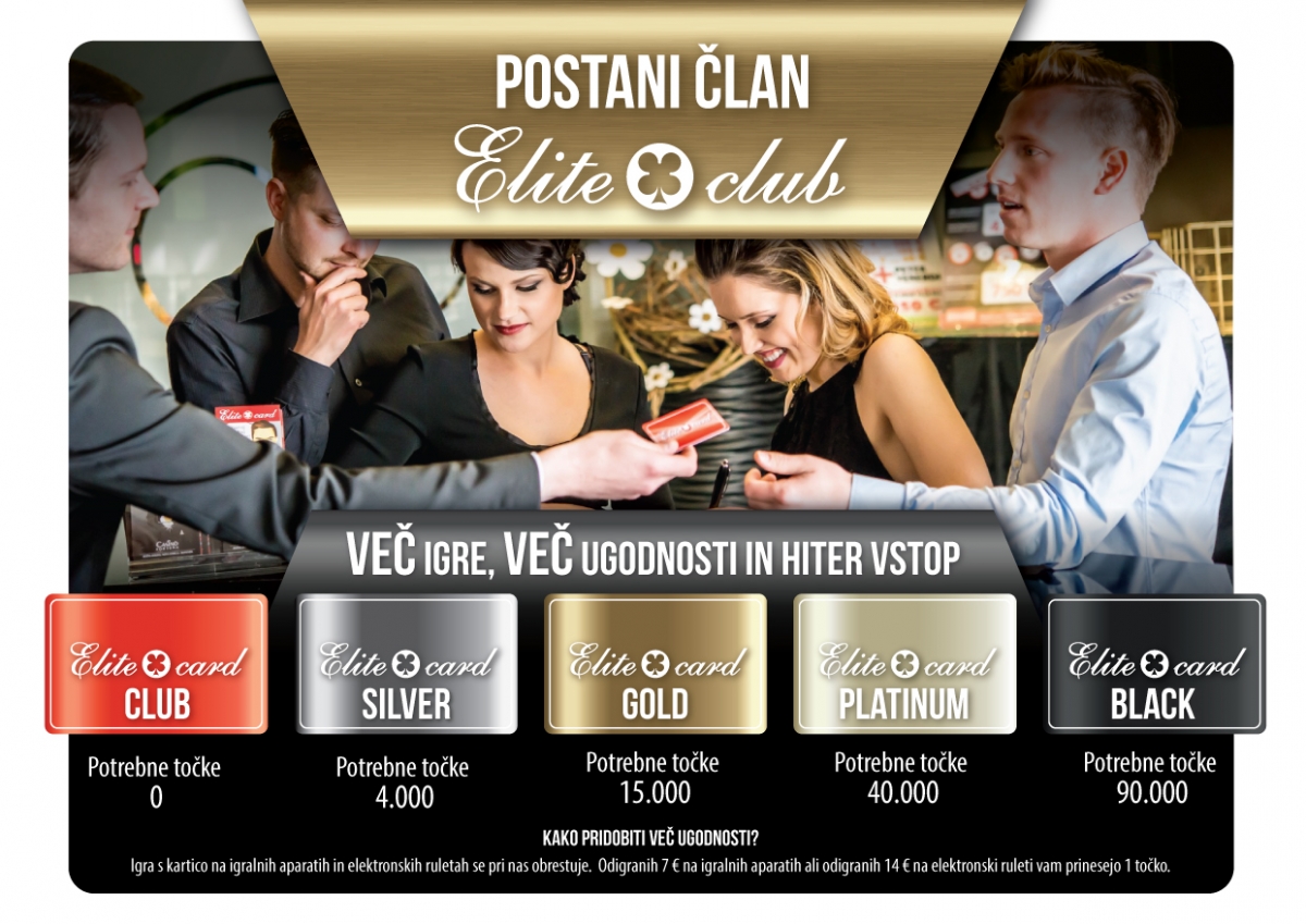 ELITE CARD vam odpira vrata brezmejnih užitkov igranja, saj je vaša igra vedno zmagovalna in dodatno nagrajena.